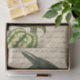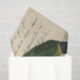 Ein Papagei und große grüne Blätter mit handgeschriebenen Schriften.