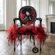Dieses faszinierende Bild erzählt eine Geschichte gotischer Eleganz und dramatischen Flairs, die eine Figur vereint, die eine Mischung aus Viktorianischer Mode und avantgardistischer Kunst verkörpert. Das Thema, das vor einem reichen roten Hintergrund mit subtilen Blumenmustern gestellt wird, verströmt eine Aura des Mysteriums und der Zuversicht. Der auffallende schwarze Hut, mit voluminösen Kruffeln und zartem Netztuch geschmückt, krönt die Figur und fügt eine Touch Grandeur hinzu. Das aufwändige Design des Hutes kontrastiert wunderschön mit den scharfen, eckigen Gesichtszügen des Subjekts, die in einem geistreichen Weiß gemalt werden und das tiefe Rot der Lippen und den kühnen, präzisen Augenlider hervorheben. Das Make-up erinnert an klassische Filmnoir und gotische Schönheit und schafft ein Gefühl zeitloser Anziehungskraft. Die Kleidung ist ein Meisterwerk von Textur und Kontrast. Die schwarz-weiß gestreiften Ärmel fügen der Komposition ein dynamisches Element hinzu, das Auge des Betrachters entlang der Armmänge zeichne und die Gnade der Pose betont. Das Korsett, aufwändig mit glänzenden Perlen und Sequenzen detailliert, umarmt die Gestalt der Figur, erhöht die dramatische Silhouette und hebt die Handwerkskunst hervor, die bei ihrer Entstehung involviert ist. Die Halskette ist mit einem hohen, gekräuselten Kragen geschmückt, der ein Viktorianisches Element der Raffinesse hinzufügt und das Gesicht des Subjekts umrahmt. Die Verwendung verschiedener Materialien, vom reinen Gewebe der Ärmel bis hin zum strukturierten, verzierten Korsett, schafft einen reichen Wandteppich von Texturen, die sowohl visuell als auch taktisch einnehmend sind. Was dieses Bild so einzigartig macht, ist die nahtlose Verbindung historischer Modeelemente mit einer modernen, edgy ästhetischen. Die sorgfältige Liebe zum Detail, vom Make-up bis zum Kostümdesign, und die kühne Verwendung von Farbe und Kontrast, schaffen ein visuelles Fest, das sowohl gespenstisch als auch faszinierend ist. Dieses Bild erfasst einen Augenblick, der sowohl theatralisch als auch intim wirkt und einen Einblick in eine Welt bietet, in der Vergangenheit und Gegenwart in einer Symphonie von Stil und Emotion zusammenstoßen. Diese Kombination aus gotischen, Viktorianischen und modernen Elementen macht das Bild nicht nur zu einer Mode-Aussage, sondern zu einem Kunstwerk, das eine tiefere Geschichte erzählt. Es lädt den Betrachter dazu ein, die Nuancen des Subjekts zu erforschen, um es zu einem überzeugenden und unvergesslichen visuellen Erlebnis zu machen.