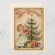 Diese bezaubernde, Vintag inspiriert Weihnachtsgrüßkarte bringt Feiertagssache mit einer Illustration eines bezaubernden kleinen Mädchens, das einen Weihnachtsbaum schmückt, umgeben von wunderschön verpackten Geschenken. Mit nostalgischen Farben und einem klassischen Design erweckt diese Karte die Freude und den Zauber der Weihnachtszeit. Ideal für den Austausch von herzlichen Wünschen, bietet es auch Platz auf der Rückseite für personalisierte Grüße, sodass Sie Ihre Nachricht wirklich besonders machen können. Mit dieser zeitlosen Sake-Karte können Sie Ihren Freunden und der Familie herzliche Urlaubssnostalgie schenken. Happy Ann Designs 2024.