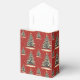 Mit diesem Vintag inspirierten Weihnachtsbaumdesign erleben Sie die Magie der Ferienzeit! Dieses festliche Muster zeigt wunderschön illustrierte, schneebedeckte Weihnachtsbäume mit Ornamenten und goldenen Sternen, Set vor einem reichen, roten Hintergrund mit zarten Schneeflocken. Bringen Sie mit diesem charmanten Kunstwerk eine Touch zeitloser Eleganz und Feierlichkeit!
