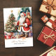 Wasserfarbene Vintage Santa & Xmas Tree Personalisierte Ferienkarte