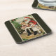 Vintager Weihnachtsbesuch mit zwei süßen Mädchen Untersetzer