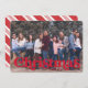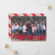 Eine lustige Weihnachtskarte mit Vintag inspirierter roter Typografie, einem mit Zuckerrohr gestreiften Backer und Platz für ein großes Foto.