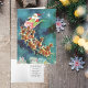 Vintager Weihnachtsmann fliegt Rentier über Häuser Karte