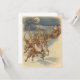 Vintage Illustration Viktorianisch Frohe Weihnachtsfeiertage mit Weihnachtsmann und seinem Rentier, der an Heiligabend Spielzeug ausliefert. Der Weihnachtsmann fliegt in einer kühlen Winternacht mit Vollmond am Himmel über den Schnee.
