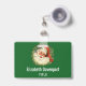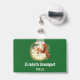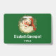 Personalisiertes Namensschild mit einem Retro-Bild mit einem lächelnden glücklichen Weihnachtsmann umgeben von einem Kiefernkranz mit einem Hauch von Heiligen in seiner Kappe.