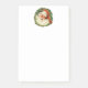 Sticky Noten mit einem Retro-Bild mit einem lächelnden glücklichen Weihnachtsmann umgeben von einem Kiefernkranz mit einem Hauch von Heiligen in seiner Kappe.