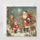 Vintager Weihnachtsmann mit Kindern, Rentieren und Karte