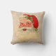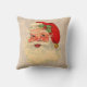 Vintager Weihnachtsmann stellen Kissen auf einem Hintergrund gegenüber, der Teefleckgewebe im hellen Tan ähnelt. Front und Rückseite des Kissens hat den gleichen Entwurf.