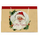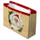 Große, weiße glänzende Geschenktasche mit einem Vintage-Bild, auf der Vorderseite, von jolly altes St. Nick auf ombre grüner Schneefall in einem Rahmen verziert mit heilig und das Gefühl "A Merry Christmas" in roter Schrift. Rote obere Grenze. Siehe dazu passende Geschenktüten für Medium, Klein und Wein, Grußkarte, Umschlag, Konfetti, Gefälligkeitskiste, Gefälligkeitsmarke, Etikett, viereckige Aufkleber, maßgeschneiderte Vinyl-Aufkleber und Verpackungspapier. Die gesamte Holiday Gift Bag Kollektion finden Sie in den SONDERTOUCHS| Gastgeschenken