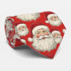 Eine hübsche Vintage Santa Krawatte mit den Gesichtern des Vaters Weihnachten mit seiner roten Weihnachtsmannmütze und einem roten Hintergrund. Ein schönes festliches Accessoire für die Ferienzeit . Die Hintergrundfarbe kann bei Bedarf geändert werden