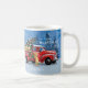 Diese personalisierte Kaffee-Tasse ist ein einzigartiges Geschenk für Freunde und Familie. Das Design umfasst einen Vintagen, roten Lieferwagen-LKW mit goldenen Retriever-Hunden und einen Weihnachtsbaum im Hintergrund. Anpassen mit einem Namen. Entworfen von dem weltbekannten Künstler ©Tim Coffey.