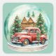 Vintager Weihnachtsrottruck in einer Schneeglobe Quadratischer Aufkleber