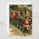 Original Vintage Illustration des Weihnachtsmannes mit Kindern in einem Weihnachtszug.
