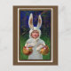 Dieses kleine Mädchen ist in einem weißen, sonnigen Anzug gekleidet und trägt zwei Körbe mit pastellfarbenen Ostereiern. Bild des Vintagen Osterkletters mit einem benutzerdefinierten, mittelbraunen Rand.