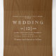 Vintager, weißer Blumenrahmen mit Initialen rustikalen Holz dreifach Einladung Hochzeit. Die Elemente dieser Hochzeit laden ein, den Vintagen, weißen Rahmen aus Acanthus-Blätter und Blume mit Ihren Initialen und die Schriftart auf braunem Holz Stil.