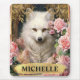 Vintager weißer Fox und rosa Rosen Mousepad