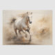 Dieses atemberaubende Kunstwerk fängt einen mächtigen weißen Hengst ein, der sich mit unglaublicher Dynamik vorwärts auflädt, Set vor einem weichen, sandigen Hintergrund. Die detaillierten, fließenden Pinselstriche vermitteln die Energie und Gnade des Pferdes in Bewegung und machen es zu einem idealen Stück für Pferdefreunde.