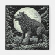 Schwarzweißsepia Vintager Werwolf stehend auf einem Berg vor einem Vollmond ai art.