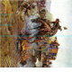 Vintager Western Koks Troubles Russell- Lg Print auf einem Hof von 56" Stoff.