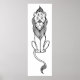 Vintage Illustration klassischer Kindermärchen und Kinderzimmer-Rhythmen von William Wallace Denslow aus dem Viktorianischen Era-Geschichtenbuch Der wunderbare Zauberer von Oz von L. Frank Baum. Ein Schwarz-Weiß zeichnend Portrait der feigen Löwe. Er ist traurig, weil er nicht mutig ist und seinen Mut finden muss.