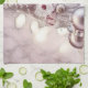 Vintager Zeichn eines rosa Gnoms auf Schnee Geschirrtuch