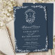 Navy Blue Monogram Vintages Wappen Hochzeit Probe Dinner Einladungs-Karte. Feiern Sie Ihren besonderen Tag mit dieser eleganten und wunderschönen Einladungskarte für Ihre Hochzeit, um Ihren besondere Anlass zu verschönern. Alle Texte sind so vorbereitet, dass Sie sie einfach und schnell mit Ihren eigenen Details personalisieren können. Wenn Sie weitere Anpassungen oder Matching-Elemente benötigen, schicken Sie bitte eine E-Mail an alldaybreakfastzazzle@gmail.com - wir würden Liebe haben Ihnen zu helfen.
