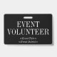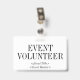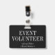Dieses klassische Abzeichen-Design beinhaltet die Meldung "EVENT VOLUNTEER". Ein solches Abzeichen könnte vielleicht dazu genutzt werden, zu zeigen, dass der Träger bei einer Veranstaltung ein offizieller Vertreter ist. [~Z0000307]