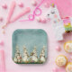 Vintages Aquamarines Blaues Osterhasen und Ei Pappteller