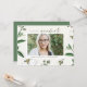 Mit diesem individuell gestaltbaren Abschluss laden wir Sie zu Ihrer Abschlussfeier ein. Weiße Blume und Grünpflanzen in Aquarelltönen. Personalisieren Sie diese Foto Abschluss Einladung durch Hinzufügen eines Fotos und Ihre Daten. Diese botanische Abschluss-Einladung ist perfekt für jedes Event-Thema.