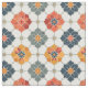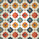 Ein nahtloses Vintages arabesque Fliesenmuster mit fett blumigen Mandalasen in warmen Rot-, Orange-, Marine- und Cremetönen. Ideal für stilvolle Hintergründe, Stoffdrucke oder elegante Zuhause-Dekorprojekte.