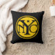 Vintages Art New- York Citylogo-Kissen. Rundes Logo mit altem Mode-Schriftart der Buchstaben NYC mit Stern über dem "y". Klassische schwarze und gelbe Farben. Retro große Apple-Logo-Shirts und -geschenke.