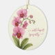 Ehre die Erinnerung an einen geliebten Menschen mit diesem eleganten runden Keramik-Ornament, mit Aquarellorchideen-Blume und der herzlichen Botschaft "mit tiefstem Beileid" auf einem warmen Hintergrund. Dieser Sakralbau bietet eine wunderschöne und dauerhafte Möglichkeit, Beileid und Erinnerung auszudrücken. Der Text ist vollständig anpassbar, sodass Sie einen Namen, ein Datum oder eine kurze Nachricht auf der Rückseite hinzufügen können - perfekt als Gedenkgeschenk oder als berührendes Zeichen der Unterstützung für jemanden, der trauert.