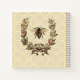 Vintage Bienen- und Kranzillustrierung auf gemustertem Hintergrund, vorne und hinten. Anpassbarer Text in modernem Skript