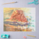 Vintage Aquarellmalerei eines der drittgrößten Felsen der Welt am Strand von Cannon ODER