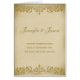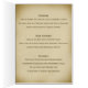 Ein Vintager, beunruhigter Papierblickhintergrund in den Schatten der warmen und sahnigen Beige bildet die Basis dieser atemberaubenden Hochzeits-Empfangs-Menükarte. Dekoratives Blatt scrollwork in einer Damastart, schattiert in den goldenen neutralen Tönen schließen diesen völlig kundengerechten Entwurf ab. Andere Größen/Formate und zusammenpassende Einzelteile sind im Speicher verfügbar.