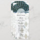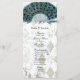 Dieses schöne Vintage Hochzeitsprogramm hat eine einfache Vorlage, die es Ihnen ermöglicht, die Hochzeitsfeier auf der einen Seite und die Reihenfolge der Zeremonie auf der anderen Seite zu füllen. Klicken Sie auf die Schaltfläche Anpassen, wenn Sie etwas ändern möchten. Blauer Pfauenfederlüfter.