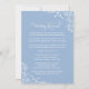 Einzigartige Einladung zum Hochzeitsessen mit Probe beinhaltet kreative Gedicht-Formulierung, um die Hochzeitsfeier zum Probe- und Probe-Dinner einzuladen. Elegante Rollen und blumengeschmückte Schnörkel prägen das Design. Farbschema: weiß und staubblau