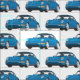 Vintages Blue Sports Car Fabric Stoff