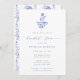 Vintages Blue Teacup und Rose Bridal Tee Einladung
