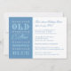 Eine elegante Brautdusche lädt zum traditionellen Hochzeitsversum "Etwas Altes, Etwas Neues, Etwas Geliehenes, Etwas Blau" ein, das in einer stilvollen Mischung verschiedener Stilrichtungen gehalten wird. Auf der Rückseite der Karte befindet sich ein blauer Blumenmuster. Die Farbtöne sind blau, hellblau und weiß.