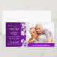 Vintage Country Blumen Design Foto-Karte in lila. Laden Sie Ihr eigenes Foto hoch und Save the Date, kündigen Sie eine Verlobung oder senden Sie einfach einen freundlichen Gruß. Hinzufügen, Ändern und Entfernen von Text nach Bedarf. Entsprechende Einladungen sind verfügbar.