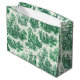 Elegante Vintage, grüne Tasche aus Jouy Monogramm Geschenktasche. Schönes nahtloses Toile de jouy Muster Blau auf weißem Hintergrund. Die Toilabdrücke sind ein Alltagswut, ein elegantes und verziertes Vintages Jouy mit exotischen Damast-Mustern, einem lustigen Stil, der derzeit für Wohngestaltung, Kleidung, Handy und IPad Hüllen, Einladungen und vieles mehr anzieht. Das Design ist klassisch und zeitlos mit atemberaubender Farbe. Sie können alle Textfarben und Schriftart ändern, klicken Sie, um weiter unter dem Bereich der Textanpassung, der Sie in das Design-Tool führt, anzupassen. Ein einzigartiges Geschenk für Geburtstag, Urlaub und jeden besondere Anlass. Ob zum Valentinstag, zu Weihnachten oder als Geschenk im Allgemeinen - es ist eine tolle Geschenkidee