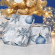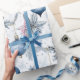 Dieses Vintage, blaue Weihnachtsbaummuster eignet sich perfekt zum Verpacken von Geschenken. Es sind passende Geschenketiketten verfügbar. AI unterstützte Grafik, die mit kommerziellem Einsatz erworben wurde. Kunstwerk: DreamCafeArt
