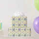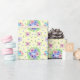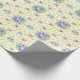 Ein Verpackungspapier mit einem Vintagen blumenfarbenen Muster auf einem hellgelben Untergrund.