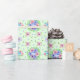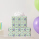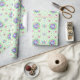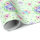 Ein Verpackungspapier mit einem Vintagen blumenfarbenen Muster auf einer hellgrünen Basis.