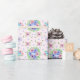 Ein Verpackungspapier mit einem Vintagen blumenfarbenen Muster auf einem hellrosa Untergrund.