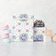 Ein Verpackungspapier mit einem Vintagen, blumenfarbenen Muster auf weißem Untergrund.