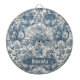 Elegantes Vintages Blue Toile de jouy Monogramm Dartboard. Schönes nahtloses Toile de jouy Muster Blau auf weißem Hintergrund. Die Toilabdrücke sind ein Alltagswut, ein elegantes und verziertes Vintages Jouy mit exotischen Damast-Mustern, einem lustigen Stil, der derzeit für Wohngestaltung, Kleidung, Handy und IPad Hüllen, Einladungen und vieles mehr anzieht. Das Design ist klassisch und zeitlos mit atemberaubender Farbe. Sie können alle Textfarben und Schriftart ändern, klicken Sie, um weiter unter dem Bereich der Textanpassung, der Sie in das Design-Tool führt, anzupassen. Ein einzigartiges Geschenk für Geburtstag, Urlaub und jeden besondere Anlass. Ob zum Valentinstag, zu Weihnachten oder als Geschenk im Allgemeinen - es ist eine tolle Geschenkidee
