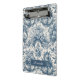 Elegante Vintag Blue Toile de jouy Monogram Zwischenablage. Schönes nahtloses Toile de jouy Muster Blau auf weißem Hintergrund. Die Toilabdrücke sind ein Alltagswut, ein elegantes und verziertes Vintages Jouy mit exotischen Damast-Mustern, einem lustigen Stil, der derzeit für Wohngestaltung, Kleidung, Handy und IPad Hüllen, Einladungen und vieles mehr anzieht. Das Design ist klassisch und zeitlos mit atemberaubender Farbe. Sie können alle Textfarben und Schriftart ändern, klicken Sie, um weiter unter dem Bereich der Textanpassung, der Sie in das Design-Tool führt, anzupassen. Ein einzigartiges Geschenk für Geburtstag, Urlaub und jeden besondere Anlass. Ob zum Valentinstag, zu Weihnachten oder als Geschenk im Allgemeinen - es ist eine tolle Geschenkidee